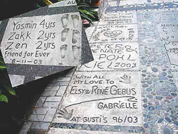 享有“人間天堂”美譽(yù)的印尼巴厘島上也有一條“星光大道”,不過和美國好萊塢的不同,這里的印模并非出自國際巨星,而是來自世界各地最普通的游客,只要掏出點(diǎn)錢,就能像明星一樣“青磚留名”。