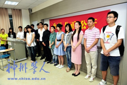 2010年9月19日,在韓中國(guó)學(xué)聯(lián)舉辦首屆以“海納百川,有容乃大”為主題的公開納新活動(dòng),李忠輝會(huì)長(zhǎng)及學(xué)聯(lián)各部門的負(fù)責(zé)人擔(dān)任了本次公開納新活動(dòng)的評(píng)審委員。招新工作進(jìn)行得井然有序,同學(xué)們普遍反映效果良好,呈現(xiàn)出一派生氣勃勃的新氣象。