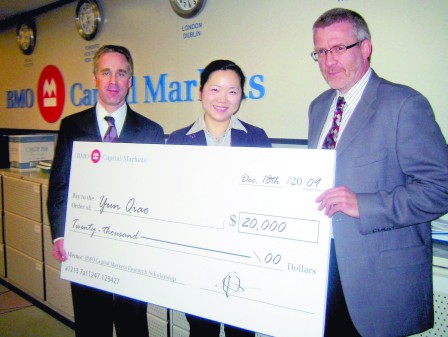 中新網1月15日電 據加拿大《明報》報道,加拿大滿地可銀行(BMO)一年一度的“資本市場高級研究獎學金”已于日前公布了評選結果,約克大學數學和統(tǒng)計學博士生,中國留學生喬云(Yun Qiao)憑借其博士論文贏得此項殊榮,獲得由該銀行頒發(fā)的2萬元獎學金。