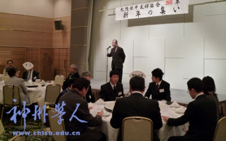2010年1月16日,札幌市內(nèi)銀裝素裹。受札幌日中友好協(xié)會邀請,北海道中國學(xué)友會會長黨志勝、副會長宋寧、石光及干事長、副干事長共六人代表留學(xué)生參加了在札幌舉辦的新年懇請會。參加這次新年會的還有中國駐札幌總領(lǐng)館徐愛平領(lǐng)事、札幌大學(xué)孔子學(xué)院學(xué)院長張偉雄、北海道日中友好協(xié)會、北海道華僑華人連合會、小樽日中友好協(xié)會、惠庭日中友好協(xié)會、日中交流の會、北海道后生勞動省北海道勞動局、晉南貿(mào)易(株)代表取締役等民間團(tuán)體和企業(yè)代表60余人。
