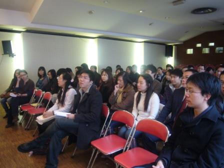 戴老師首先歡迎今年加入巴黎學聯(lián)的“新鮮血液”,并期望新成員能和老成員一起做好“計劃滿滿的2010年”的各項工作,我們將迎來“一個又一個戰(zhàn)役,首當其沖便是一周以后的春晚”。由于時間緊、任務重,戴老師希望春晚將是新老成員展示自己、一起努力為新一年工作打好頭炮的最佳機會。