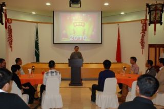 楊大使向各位留學(xué)生并通過(guò)他們向在國(guó)內(nèi)的親人致以誠(chéng)摯的新春?jiǎn)柡,介紹了國(guó)內(nèi)發(fā)展和中沙雙邊關(guān)系有關(guān)情況。楊大使表示,近年來(lái),中國(guó)經(jīng)濟(jì)保持平穩(wěn)快速增長(zhǎng),社會(huì)建設(shè)取得巨大成就,國(guó)際地位不斷提升。中國(guó)已成為世界第三大經(jīng)濟(jì)體,2009年外匯儲(chǔ)備繼續(xù)保持世界第一,外貿(mào)出口躍居世界第一,高速公路總里程數(shù)居全球第二。繼2008年奧運(yùn)會(huì)后,今年我們還將舉辦2010年上海世博會(huì),將再次向世界展示一個(gè)發(fā)展、開(kāi)放、繁榮的中國(guó)。祖國(guó)的發(fā)展讓身居海外的中華兒女感到更加自豪和驕傲。