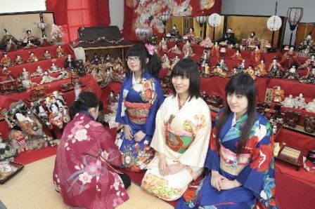 這一次以女兒節(jié)為中心的交流活動,是由神戶“白西克-萊昂斯俱樂部”組織的。日本風俗以每年三月三日為女兒節(jié),有在家中放置玩偶的習(xí)俗。該俱樂部與當?shù)財z影師永尾勝子收集這些富有日本文化韻味的玩偶,每年在大崎神社展出,到今天已經(jīng)是第九次了。