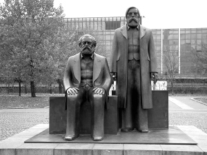 馬恩銅像雕塑,始建于上世紀七十年代的東德時期。據(jù)說,關(guān)于馬克思坐著而恩格斯站著的造型構(gòu)思,有兩種解釋,一是馬克思是德國人而恩格斯不是德國人,二是恩格斯是馬克思的戰(zhàn)友和學生。