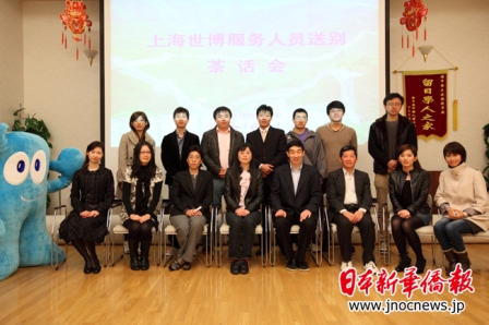 中新網(wǎng)4月23日電 據(jù)日本新華僑報網(wǎng)報道,2010年上海世博會,是展示中華風采、溝通世界人民的一次盛會。雖然遠在千里之外,留日中國學子們也是滿懷熱情迎接世博的到來,并準備為之貢獻自己的力量。4月22日,中國駐日本大使館教育處為即將啟程去上海的8名中國留學生舉行了送別茶話會。這8名中國女留學生是從近200名報名者中遴選出來的,她們將在世博會的日本商品館工作。