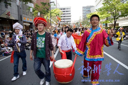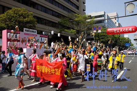 作為最能代表福岡博多的節(jié)日之一,也是西日本最有名的全民歡樂(lè)節(jié)之一,“博多打鼓節(jié)”起于平安時(shí)代,由一種稱為“松囃子”的民間藝術(shù)演變而來(lái),最早的時(shí)候,它是向當(dāng)?shù)仡I(lǐng)主祝賀新年的儀式,如今已經(jīng)演變成為福岡地區(qū)傳統(tǒng)的節(jié)日,市民組織各式各樣的慶祝活動(dòng)。2010年度的博多打鼓節(jié),中國(guó)留學(xué)生報(bào)名踴躍,積極參與,“中國(guó)留學(xué)生方隊(duì)”列于壓軸位置,在各個(gè)留學(xué)生隊(duì)伍中,“中國(guó)留學(xué)生方隊(duì)”參加人數(shù)最多,展示了中國(guó)傳統(tǒng)的少數(shù)民族服飾服飾和舞獅表演,亮點(diǎn)頻現(xiàn)。