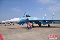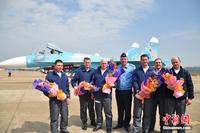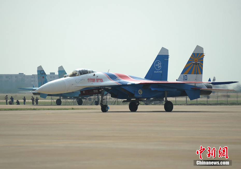 中新網(wǎng)珠海11月11日電(陳海峰) 11日中午12點25分,“俄羅斯勇士”特技飛行表演隊在闊別6年之后,再次來到珠海航展。俄羅斯這次一共派出5架蘇27來到珠海,將在航展上進行飛行表演與靜態(tài)展示。