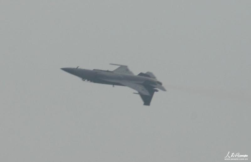 梟龍戰(zhàn)機表演空中翻轉(zhuǎn)特技。人民網(wǎng)記者 閆嘉琪 攝