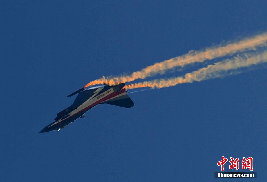 中新網(wǎng)珠海11月14日電(陳海峰) 第九屆珠海航展于昨日上午開(kāi)幕。隨后,中國(guó)空軍八一飛行表演隊(duì)進(jìn)行飛行表演,上演了“向上開(kāi)花”、“雙機(jī)對(duì)沖”、“小半徑轉(zhuǎn)圈”等精彩動(dòng)作。記者曾多次觀看過(guò)八一飛行表演隊(duì)的表演,而這次是最精彩的一次!