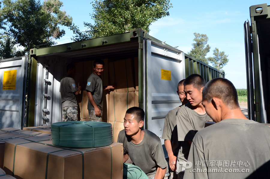 官兵們進行物資準備