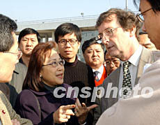 香港立法會交通事務(wù)委員會、保安事務(wù)委員會等議員和團(tuán)體代表,一月十日參觀即將實(shí)施二十四小時(shí)通關(guān)的落馬洲管制站。圖為劉健儀等向該管制站工程師了解擴(kuò)建事宜。潘索菲 攝