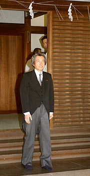 2001年8月,小泉在8月15日日本二戰(zhàn)投降紀(jì)念日前兩天參拜靖國(guó)神社,這一舉動(dòng)立即引起了中國(guó)和韓國(guó)政府的抗議。去年4月,小泉未經(jīng)宣布再次參拜靖國(guó)神社,希望能夠淡化這一舉動(dòng)產(chǎn)生的影響,但是中國(guó)政府仍然對(duì)此表示強(qiáng)烈抗議,并推遲了日本防務(wù)相訪問中國(guó)和中國(guó)海軍艦隊(duì)出訪日本的時(shí)間。