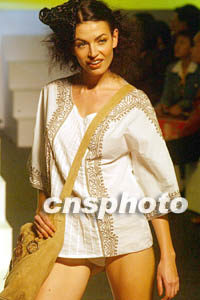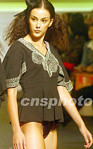“香港時(shí)裝節(jié)秋冬系列2003”及“香港國(guó)際時(shí)裝薈萃”一月十四日在香港會(huì)展中心開(kāi)幕。圖為模特展示香港四名時(shí)裝設(shè)計(jì)師新款作品。作者:錢(qián)興強(qiáng)