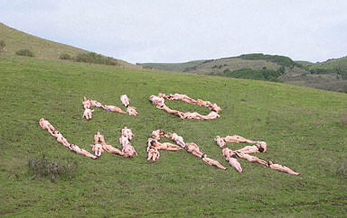 這些為和平呼吁的婦女已經(jīng)擺過七次造型,供媒體進行拍攝。她們曾經(jīng)在一處海灘用裸體拼寫過“和平”一詞;還有一次她們在加利福尼亞州的一處農(nóng)場的山坡上拼寫“不要戰(zhàn)爭”的口號。
