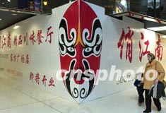 農(nóng)歷新年將至,北京東方新天地商業(yè)街上,一家即將開(kāi)業(yè)的中餐館以京劇臉譜示人,希望給顧客留下深刻印象。作者:張煒