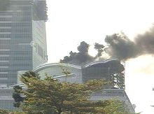 中新網(wǎng)1月16日電 去年“331”地震驚傳砸死人意外的臺(tái)北101金融大樓今日驚傳意外失火,今日上午100多層高的大樓底下,約10多層已完工大半的圓形帷幕突然冒出大量濃煙,隨后竄出熊熊火勢(shì),屋頂工作人員驚慌四散,消防隊(duì)獲報(bào)后亦趕往救火。