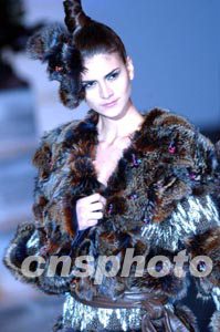 1月17日在香港時裝節(jié)上舉行的“香港青年時裝設(shè)計家創(chuàng)作表演賽2003”上,模特展示青年時裝設(shè)計師張嘉輝才華橫溢的時裝作品。 洪少葵 攝