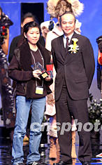 香港青年時裝設(shè)計(jì)家創(chuàng)作表演賽2003,1月17日在香港時裝節(jié)上舉行,自由設(shè)計(jì)師馬詩淇〔左〕作品榮獲全場總冠軍。洪少葵 攝