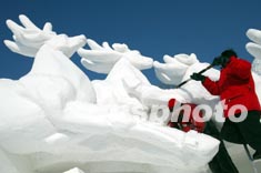 哈爾濱雪雕博覽會(huì)一月正在松花江畔舉行,園藝師制作長(zhǎng)達(dá)數(shù)十米的大型雪雕森林之歌,好似藍(lán)天下的神曲。作者:毛建軍