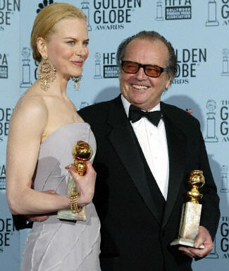 圖為妮可·基德曼(左)和杰克·尼克爾遜(右)分別獲得劇情類電影最佳女、男主角獎。