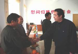 中新網(wǎng)昆明1月21日電 (記者納家驊)專程從北京到云南慰問(wèn)華僑農(nóng)場(chǎng)困難職工的國(guó)務(wù)院僑辦副主任許又聲一行,昨天下午看望慰問(wèn)了平遠(yuǎn)華僑農(nóng)場(chǎng)的困難職工家庭,向困難職工贈(zèng)送了慰問(wèn)金,并向他們致以親切的問(wèn)候和春節(jié)的祝賀。