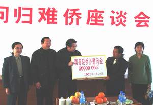座談會(huì)上,許又聲副主任還代表國(guó)務(wù)院僑辦向平遠(yuǎn)華僑農(nóng)場(chǎng)贈(zèng)送了五萬(wàn)元人民幣慰問(wèn)金。