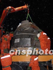 中國“神舟”四號飛船著陸場系統(tǒng)的總體設計人員,在對試驗數(shù)據(jù)進行仿真分析后在北京表示,中國載人航天著陸場系統(tǒng)已經(jīng)具備執(zhí)行高安全、高可靠性飛船搜索回收和航天員救生的能力,能夠滿足“神舟”號飛船載人飛行任務的要求。圖為“神舟”四號飛船返回艙回收的實況。作者:孫陽