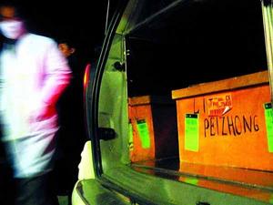 十分鐘后,一個印有“LIPEIZHONG”字樣的黃色棺木抬了下來,頓時,哭聲一片。