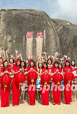 二百零三名模特佳麗春節(jié)前做秀海南三亞天涯海角,參加“三亞與美麗同行活動(dòng)”,迎接即將到來的中國農(nóng)歷羊年。作者:毛建軍