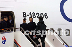 臺(tái)商及其眷屬登上飛機(jī)