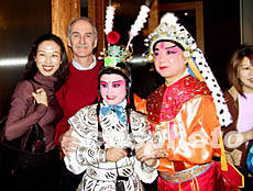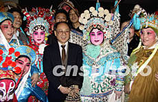 由美國(guó)齊淑芳京劇團(tuán)演出的全本中國(guó)京劇《楊門女將》1月25日晚在紐約百老匯完成首次演出,這是繼1930年梅蘭芳在紐約演出以來中國(guó)京劇又一次登上百老匯舞臺(tái)。圖為中國(guó)駐紐約總領(lǐng)事張宏喜祝賀演出成功。作者:趙海燕