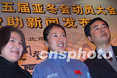 中國代表團(tuán)出征第五屆亞冬會動員大會二十七日在北京舉行,冬奧會冠軍楊揚(yáng)成了新聞媒體及與會人員追逐的熱點(diǎn)。圖為與會人員爭相與楊揚(yáng)合影留念。作者:武仲林