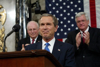 美國當(dāng)?shù)貢r(shí)間1月28日晚,布什總統(tǒng)在國會(huì)山發(fā)表了一年一度的《國情咨文》。