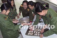 三十日,駐閩某部文藝連營(yíng)房處處張燈結(jié)彩,喜迎羊年新春一派春意盎然的景象。慰問演出的女兵在連隊(duì)包起了年夜餃子。作者:劉可耕