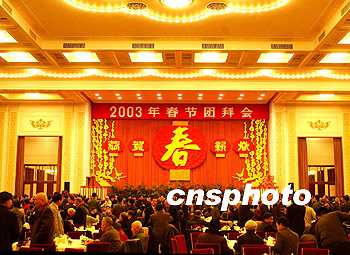 中新網(wǎng)北京1月31日電(記者 齊彬)中共中央、國務(wù)院今天上午在人民大會(huì)堂舉行二00三年春節(jié)團(tuán)拜會(huì),江澤民、胡錦濤、李鵬、朱镕基、李瑞環(huán)、李嵐清、吳邦國、溫家寶、賈慶林、曾慶紅、黃菊、吳官正、李長春、羅干等領(lǐng)導(dǎo)人同首都各界人士四千五百多人歡聚一堂,辭舊迎新,共慶中國人民的傳統(tǒng)節(jié)日。