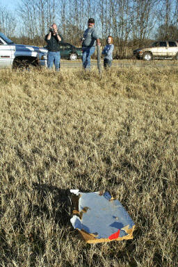 中新網(wǎng)2月2日電 北京時(shí)間2月1日晚上10時(shí)許,美國(guó)航天飛機(jī)哥倫比亞號(hào)在返航過程中于得克薩斯州上空失事墜毀。圖為失事后人們?cè)诘孛姘l(fā)現(xiàn)的飛機(jī)殘骸。