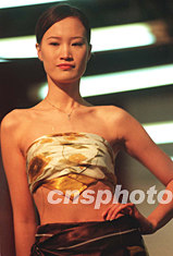 北京地壇春節(jié)文化廟會(huì)上突出《江南情思》的系列時(shí)裝,使廟會(huì)融入了更多的時(shí)尚內(nèi)容。作者:鄒憲