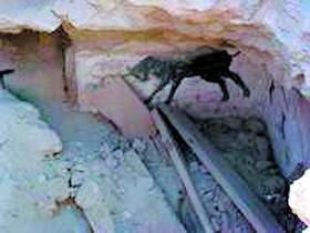 在盜墓現(xiàn)場,先見到幾座挖開的古墓,棺材板扔得到處都是,尸骨遍地。后是一座精美絕倫的古墓,它的位置很高,在一個(gè)高高的佛塔正下方。盜墓人從正上方打開洞進(jìn)入了墓室,墓室共有兩個(gè),第一個(gè)墓室內(nèi)有5具棺材,已經(jīng)被盜墓人破壞,滿地都是碎成一塊一塊的干尸、枯骨和絲綢殘片。最讓他們感到吃驚的是墓室墻上的壁畫,一峰金駝和一峰銀駝相互撕咬著,一個(gè)穿長袍模樣的人站在中間,打手勢讓兩駝分開;旁邊一頭奔牛怒目而視,振蹄欲奔?上Т吮诋嬕驯黄茐,一具干尸躺在壁畫下。第二個(gè)墓室有4具彩棺被劈開,干尸及綢緞碎片扔得滿地都是。彩棺的顏色非常華麗。壁畫上一大群大臣模樣的人正在行禮,模樣栩栩如生。可惜此壁畫也被損壞了。