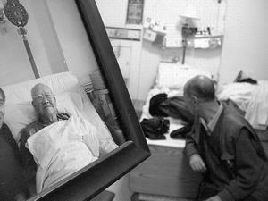 協(xié)和醫(yī)院A級二病房里袁先生病床的床頭上還掛著兩排醒目的賀年卡,其中一張寫著“早日康復(fù),壽比南山”的卡片是袁先生兒子袁偉承寄來的。病床邊上的病歷本詳細(xì)記錄著袁先生住院期間每天的病況。在病房里,還放著一張袁先生在病中與兒子袁偉承的大合影,照片上的袁先生笑得很燦爛。