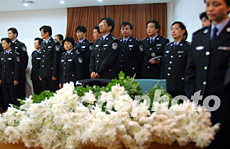 會后浦東警局為年僅四十五歲的陳衛(wèi)國警員舉行了隆重的悼念儀式。