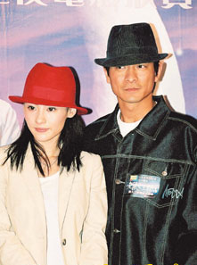 有人說張柏芝身邊的男性朋友都喜歡穿HipHop?華仔一身hip hop打扮,正好迎合柏芝的愛好,他是否暫時充當柏芝的情人,共度情人節(jié)呢?華仔笑稱,穿成這樣本來就是打算配合柏芝,這部戲是在情人節(jié)上映,穿情侶裝有感覺!