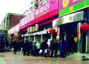 中午1點(diǎn)10分,記者在勁松橋西北角的稻香村分店門(mén)口看到,排隊(duì)的顧客有180多人,隊(duì)伍一直向西遮擋了該店隔壁兩家店鋪的街面,蜿蜒到了一棟宿舍樓前。排在最后的顧客已經(jīng)開(kāi)始聊天解悶。商店門(mén)口的柱子上則貼著“每人限購(gòu)4斤”的告示,兩名男營(yíng)業(yè)員站在柜臺(tái)外維持秩序,正在買(mǎi)元宵的顧客說(shuō),自己9點(diǎn)多就排上了,都快沒(méi)信心了才輪到。