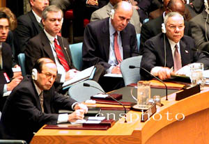 真所謂“不是冤家不聚頭”,伊拉克常駐聯(lián)合國(guó)代表穆罕默德·杜里列席會(huì)議,而且就落座于美國(guó)國(guó)務(wù)卿鮑威爾身旁。鮑威爾不時(shí)地瞟著杜里,看他聽(tīng)別人發(fā)言時(shí)忙些什么。發(fā)言中,鮑威爾稱(chēng)伊拉克領(lǐng)導(dǎo)人是“瘋子”,始終玩弄各種花招,欺騙世界。他還強(qiáng)硬地要求伊拉克“必須服從”,解除武裝。杜里始終鎮(zhèn)靜地做著筆記。發(fā)言中,他很低調(diào)地表白:伊拉克已經(jīng)完全敞開(kāi)了武器核查的大門(mén),目的是向全世界證明,沒(méi)有大規(guī)模殺傷性武器。他諷刺說(shuō):“這出乎有些人的意料,他們對(duì)我們前所未有的合作感到吃驚。”