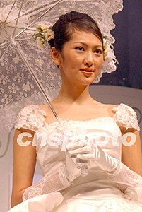 第三十屆情人節(jié)婚紗及結(jié)婚用品展,二月十五日在香港會(huì)展中心舉行。圖為香港名模展示婚紗。錢興強(qiáng) 攝