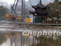 杭州西湖湖底隧道工程動(dòng)工以來(lái),西湖湖面以平均每天三十厘米的速度下降,截至十八日下午,西湖已基本見底。據(jù)悉,這是西湖近百年來(lái)第二次見底,第一次見底是一九五五年底至一九五六年初,由大旱造成。作者:張茵