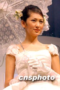 第三十屆情人節(jié)婚紗及結(jié)婚用品展,二月十五日在香港會(huì)展中心舉行。圖為香港名模展示婚紗。作者:錢(qián)興強(qiáng)