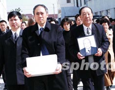 二月二十日,世界著名高能物理學(xué)家袁家騮教授的骨灰,在其親屬及江蘇省太倉市官員、太倉市明德中學(xué)代表的護送下,從北京運抵故鄉(xiāng)太倉安葬。當(dāng)?shù)孛鞯轮袑W(xué)的學(xué)生前往迎接。袁先生生前曾先后捐助明德中學(xué)五百余萬元,幫助明德中學(xué)建起了科技樓,明德樓。作者:王大經(jīng)