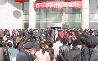 中新網(wǎng)2月21日電 昨日下午,沈陽各界人士紛紛涌向“慕馬”案件沒收物品公開拍賣展示現(xiàn)場——金劍大廈,由于展示現(xiàn)場空間有限,加上事先沒有預料到有上萬觀眾前來觀看,所以部分觀眾被“拒之門外”。