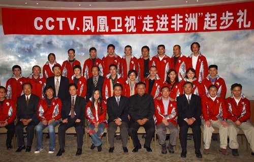 此次行動由CCTV、鳳凰衛(wèi)視共同打造。雙方昨晚在北京釣魚臺芳菲苑舉行隆重的“起步禮”。外交部、國務(wù)院新聞辦、廣電總局、文化部等部門相關(guān)人士,以及非洲三十多個駐華使館的大使、文化參贊及各界約200余人到場為隊員們壯行。