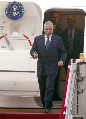 另據(jù)報道,鮑威爾于22日下午搭乘專機飛抵東京揭開日本、中國和韓國三國的訪問行程。他于當天晚上在外務省飯倉公館先和小泉日相進行約四十五分鐘的會談,隨后接著和川口外相會談。